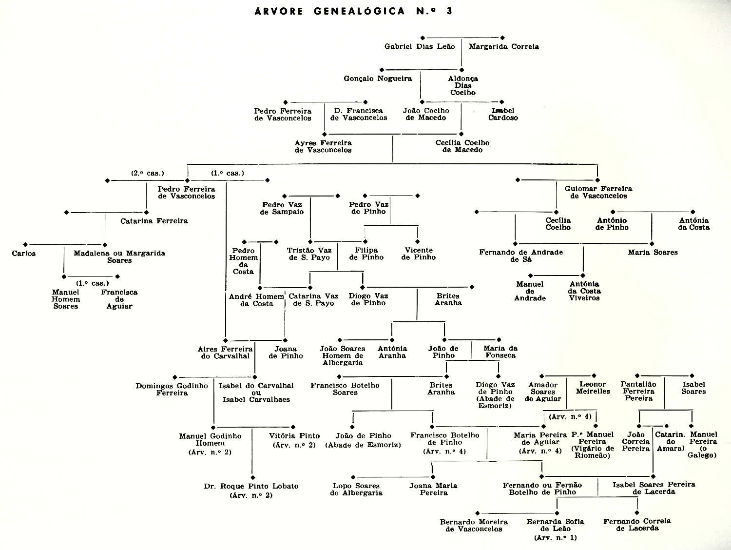 Aires Ferreira de Vasconcelos (Fid.º da Casa Real que dizem ser de Lamego ou da Terra da Feira, f.º de Pedro Ferreira de Vasconcelos e de sua m.er D. Francisca de Vasconcelos e viveram os dt.os na qt.ª da Granja de Carcavelos no ano de 1506. Pedro Ferreira era da Terra da Feira e Fidalgo da Casa Real inda que outros o fazem de Lamego: não se sabe a sua filiação. C. com Cecília Coelho de Macedo: não confundir este Pedro Ferreira de Vasconcelos com outro, do mesmo nome e apelidos, filho de Aires Ferreira de Vasconcelos [ T. 12 – fl. 40 ]
