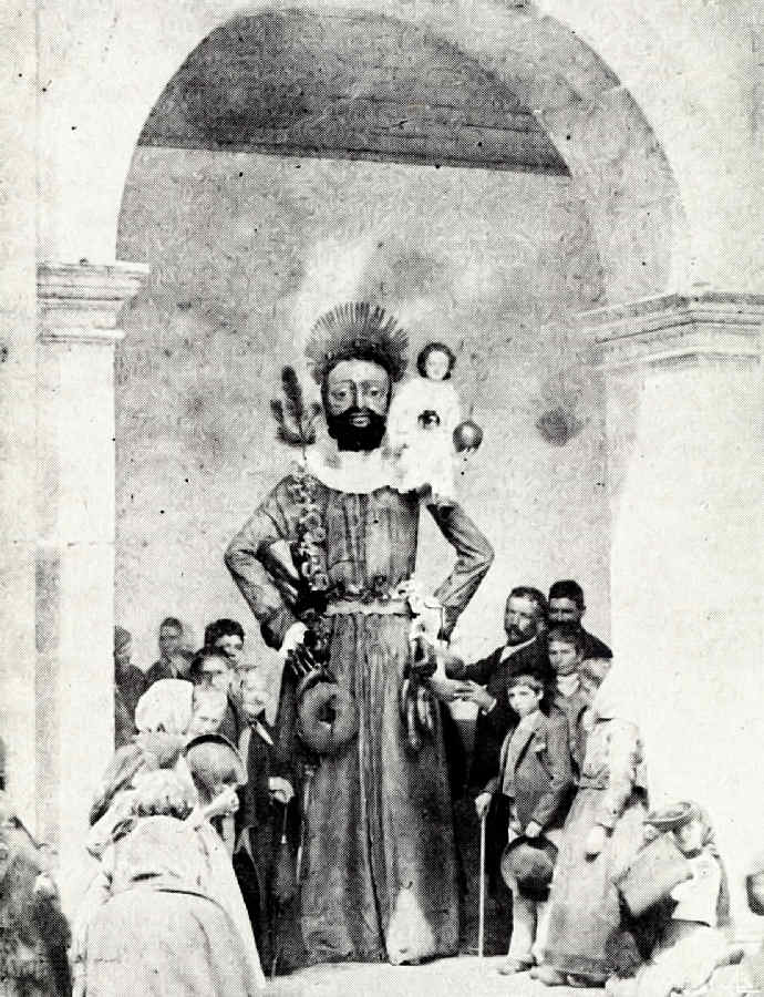 A imagem de S. Cristóvão em dia de procissão do Corpo de Deus,