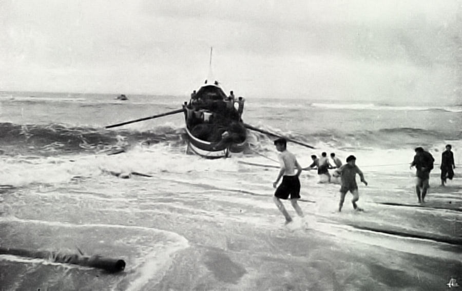 Havia o arrais do mar, que se sentava à ré do barco e dirigia os trabalhos e o arrais de terra, a quem estava entregue todo o cuidado da recolha da rede. / 9 /