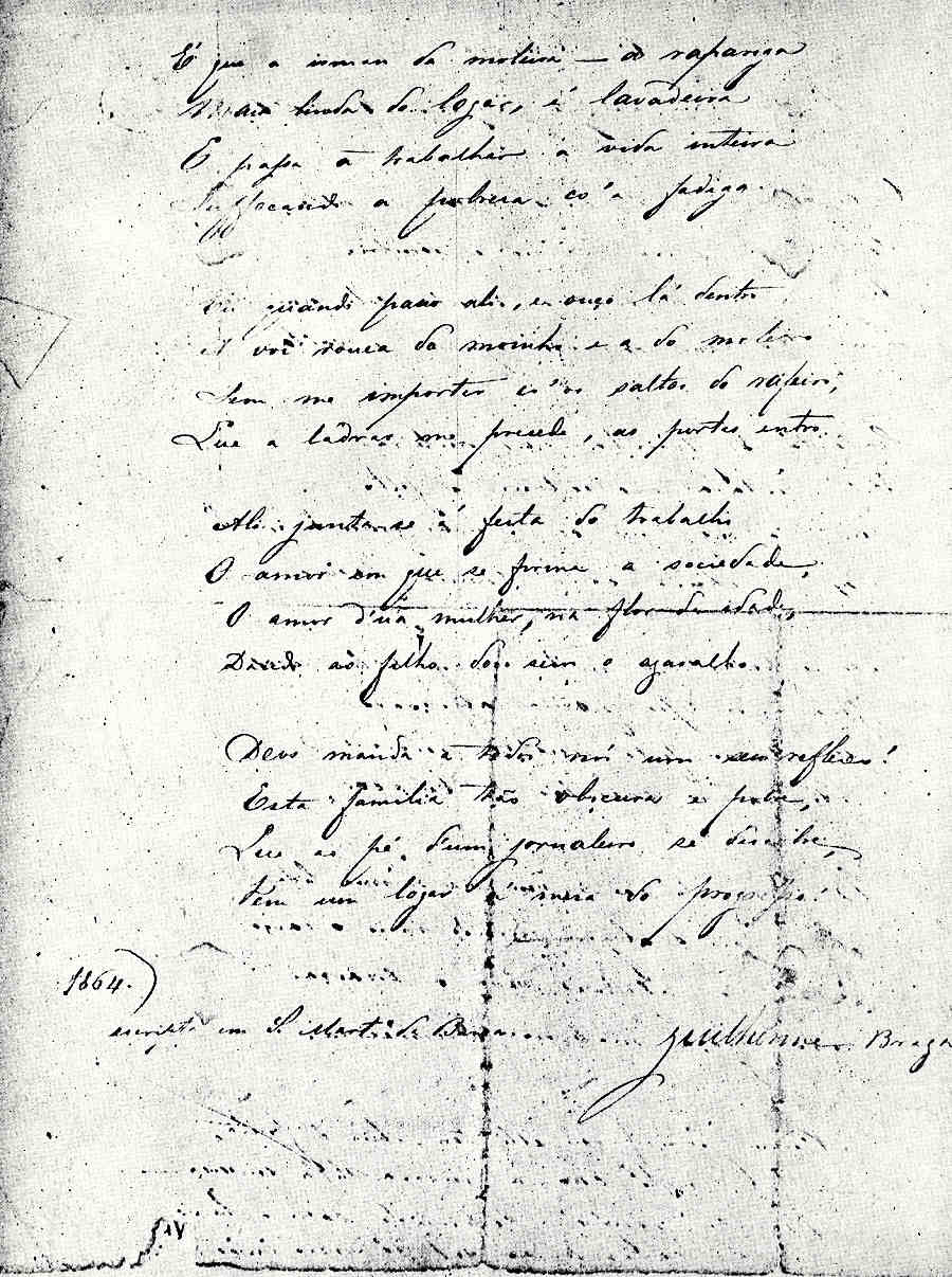 «Damos a seguir dois exemplos que mostram como em G. Braga se encontram algumas imagens e algumas maneiras de expressão poética depois aperfeiçoadas pelos poetas subsequentes:
