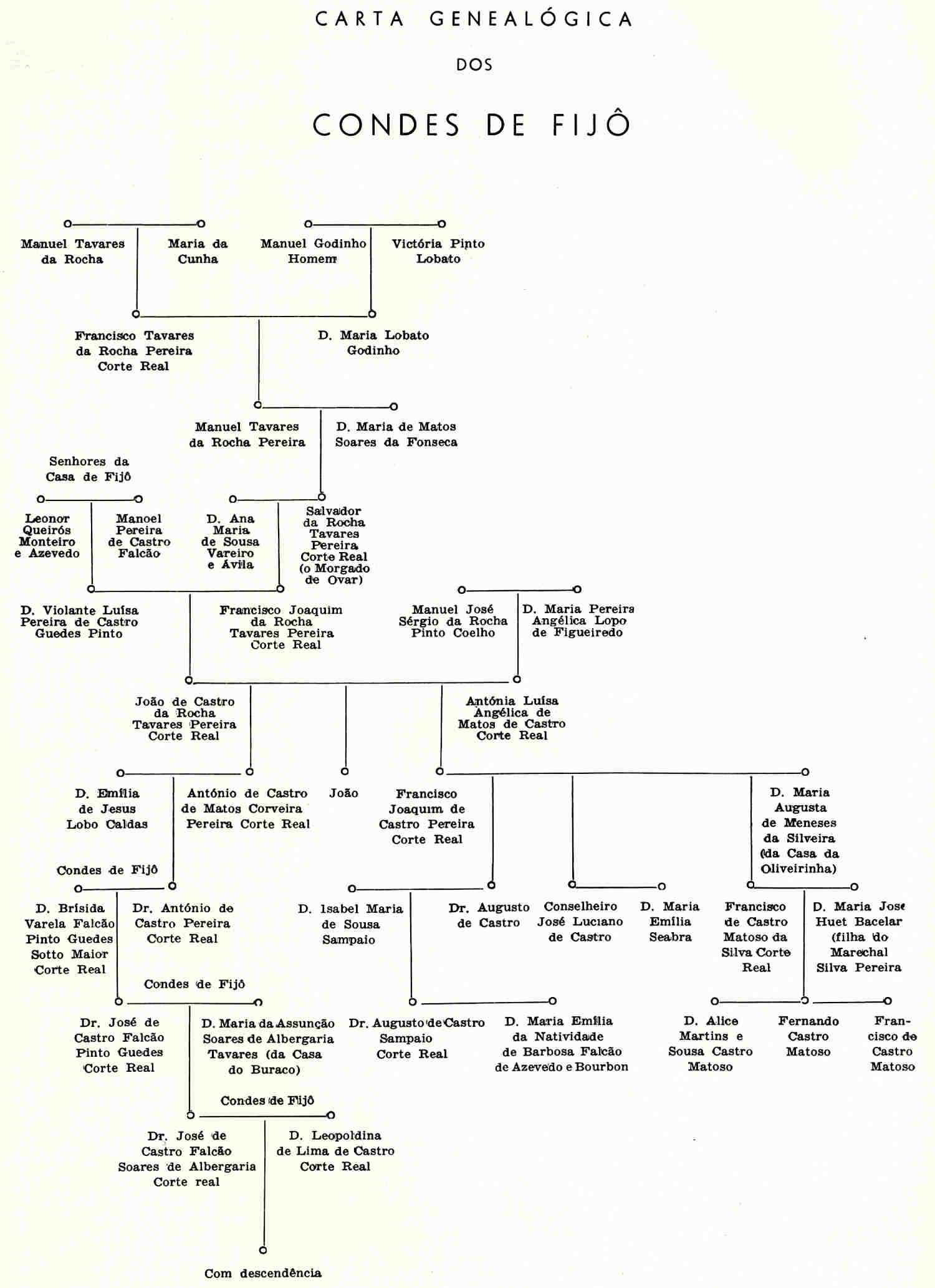 c) António de Castro Corveira Pereira Corte-Real casado com D. Emília de Jesus Lobo Caldas, da casa da Porta, em Tagilde, Guimarães, que deu continuidade à casa, como senhor da casa e quinta de Fijô: nasceu em 4 de Agosto de 1800.