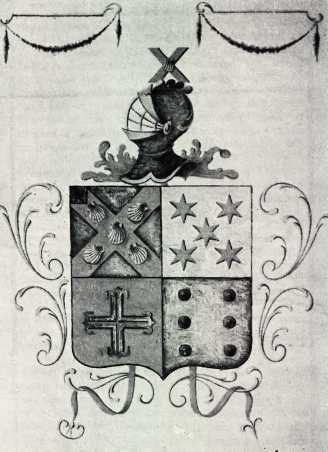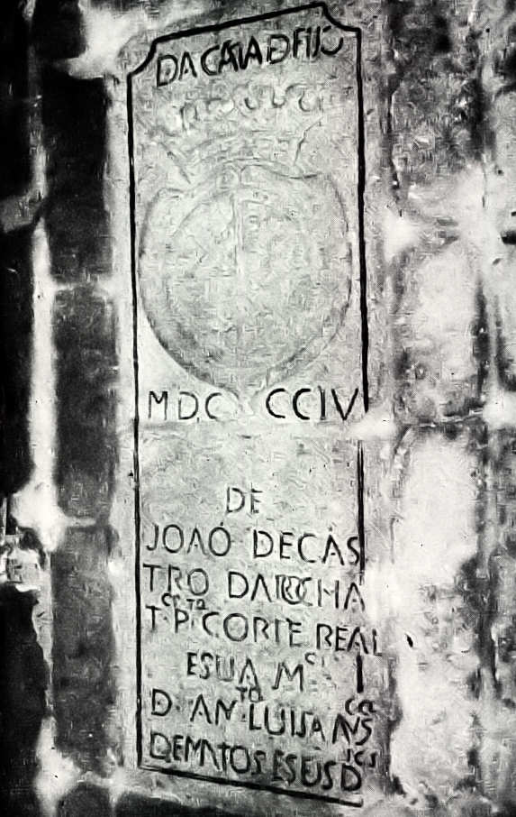 Aquela data deve corresponder à feitura da pedra, porquanto ao João de Castro, que a mandou fazer, foi concedido em 2 de Abril de 1813, por D. João VI, como príncipe regente, brasão de armas, com escudo esquartelado, tendo no primeiro quadrante as armas dos Rochas, no segundo as dos Tavares, no terceiro as dos Pereiras (em campo vermelho uma cruz de prata florida e vazia do campo) e no quarto a dos Castros. Elmo de prata aberto guarnecido de ouro. Paquife dos metais e cores das armas. Timbre dos Rochas que é a aspa das armas com uma das vieiras no centro e por diferença uma brica de prata com uma arruela vermelha.