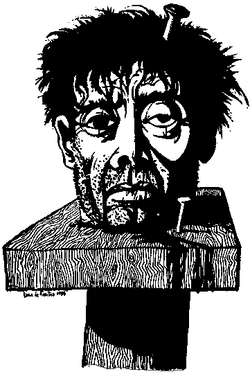 garganta, enrolada a corda na trave da forca, e sobre o vulto