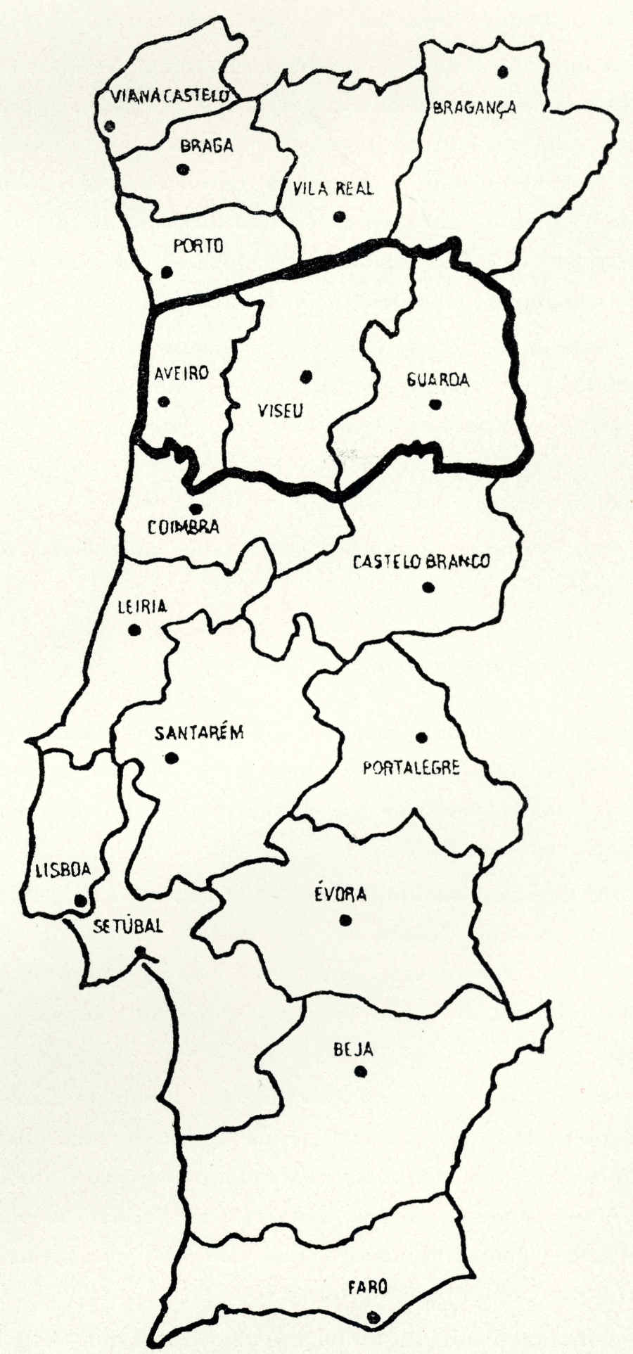Divisão Distrital em vigor com a hipótese assinalada unindo 3 distritos.