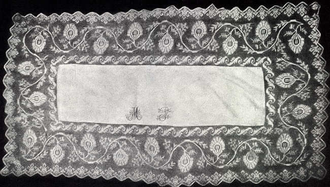 de casa havia a grande toalha de mesa, com desenhos levantados,