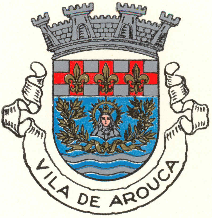 Armas De azul com o busto da Rainha Santa Mafalda vestida de prata e coroada e aureolada de ouro, acompanhada por dois ramos de oliveira troncados, folhados e frutados de ouro, atados do mesmo metal em ponta. Em chefe de prata axadrezado de vermelho, três flores de lis de ouro em faixa. Em contrachefe duas faixas ondadas de prata. Coroa mural de prata de quatro torres, listel branco com os dizeres «Vila de Arouca».