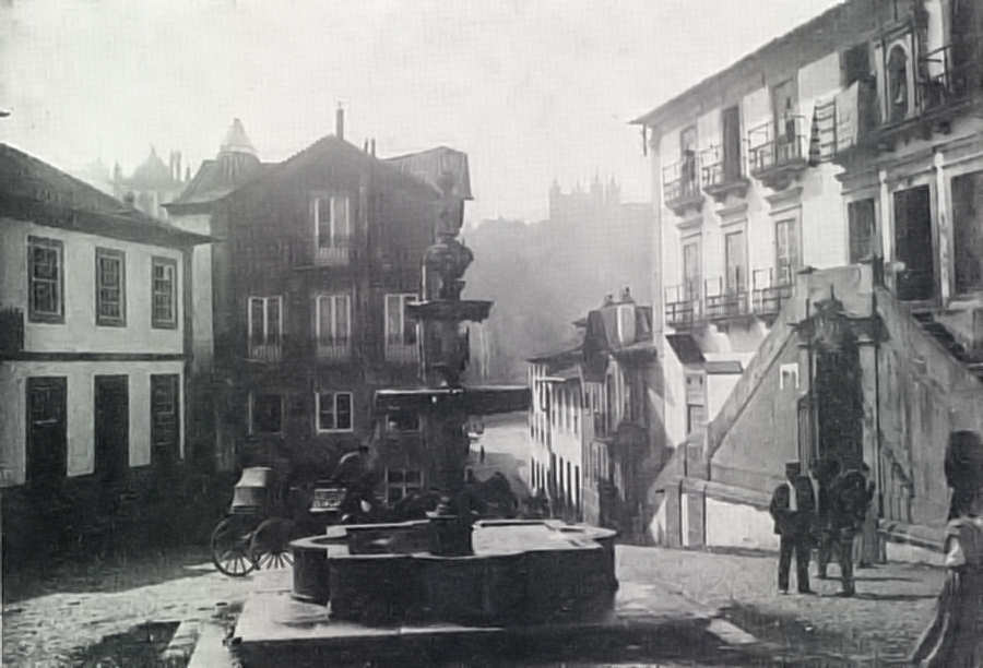 «A colocação do chafariz e o encanamento das águas duraram desde Junho de 1848 até 30 de Junho de 1849; portanto o chafariz em frente do Tribunal foi feito mais de três anos depois da data apontada pelo Pinho Leal e em vez de ser da iniciativa do seu antigo / 81 / correlegionário miguelista José Correia, foi, pelo contrário, o modo hábil do Bernardo de Sá se ver livre de futuras iniciativas da mesma procedência.