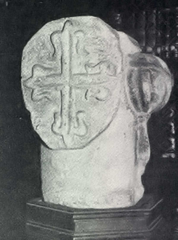 «A pedra é sem dúvida o topo de um padrão cilíndrico: A forma e disposição das peças heráldicas, postas em remate a que só falta a extremidade ou acabamento, assim no-lo faz concluir.