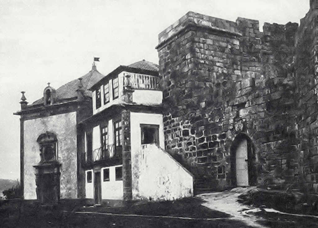 Nos baixos é a sacristia e no andar superior, há porta para uma das tribunas da capela, de onde os condes ouviam a missa. Quando em 13 de Setembro de 1839 o futuro marechal José Joaquim da Silva Pereira, irmão do conde das Antas, arrematou os paços arruinados dos condes e uns celeiros existentes na praça de armas do Castelo, a lista 342 dos bens nacionais, à venda, dá a confrontação dos paços pelo «norte com casas da capela». Portanto estas não foram vendidas, mas o marechal «mandou romper uma parede que se comunicava para um quarto das casas da capela e tomou posse clandestinamente dele a título que lhe pertencia», como diz o secretário da administração desse tempo numa carta publicada. Ora, deste marechal, era filho o conselheiro Francisco Matoso de Castro Corte Real. Quando o filho deste vendeu a uns bairristas feirenses o paço e os celeiros, quis que fossem fazer / 97 / a escritura a Lisboa responsabilizando-se pelas despesas da viagem. O João António de Andrade que abonou essa despesas, recebeu em paga as casas da capela em 1914. Morrendo este Andrade, o filho vendeu-as à Comissão de Vigilância, mediante um simples recibo do preço em 1927. Não há títulos, não há registo. Mas em 18 de Outubro de 1911 a capela do Castelo foi arrolada pela Comissão Central da Execução da Lei da Separação. Parece-me que indevidamente; porque era uma capela já pertencente ao Estado, como anexa ou parte integrante do monumento nacional. Não virá um dia a Comissão de Separação querer apossar-se também da casa, como pertença da Capela? O bom seria arrancar mesmo a capela dessa Comissão visto que pertence directamente ao Património Nacional.