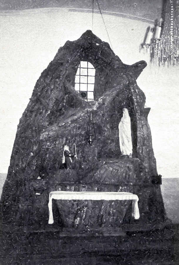 O corpo central (transepto) tem, na sua face norte, um altar reproduzindo a gruta de Nossa Senhora de Lourdes, revestido a cortiça, com a imagem desta Nossa Senhora e a figura da vidente Bernardete.