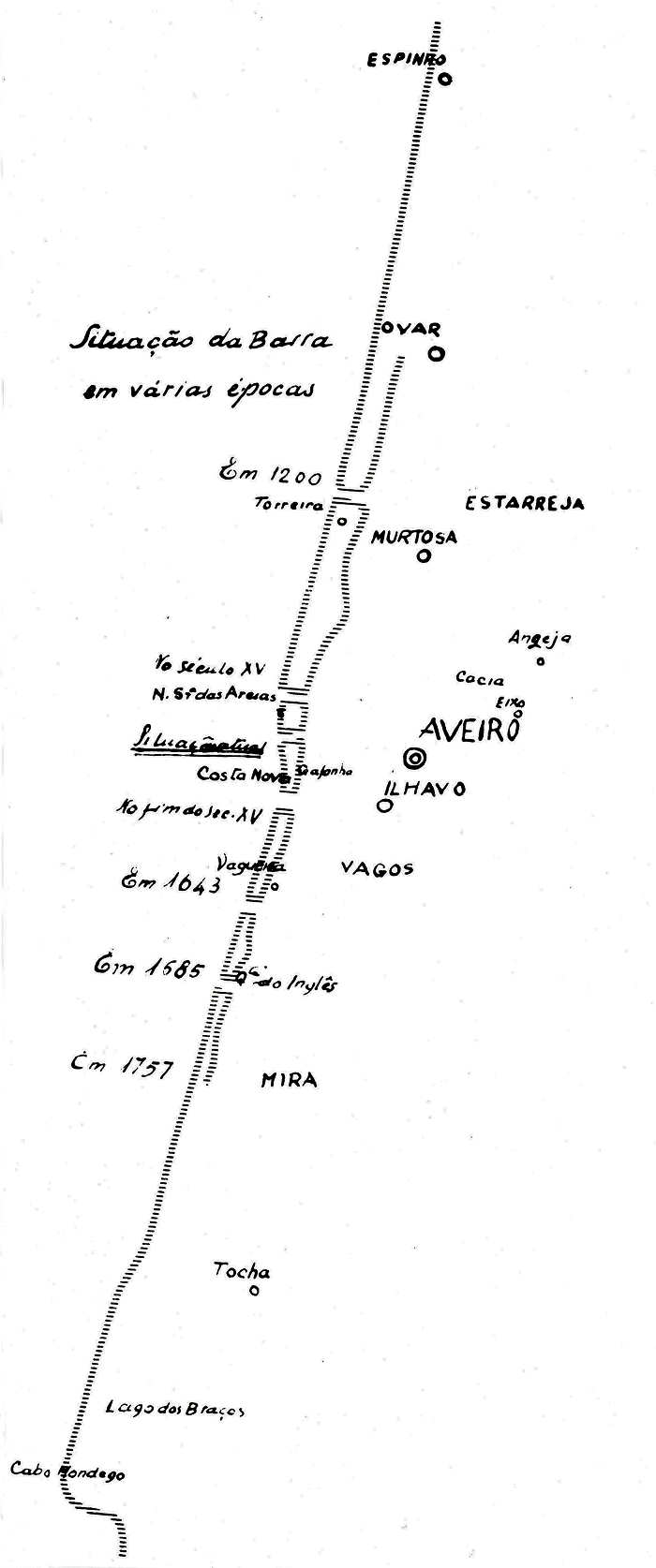 por exemplo, a laguna de Aveiro formando a costa, a partir do local onde