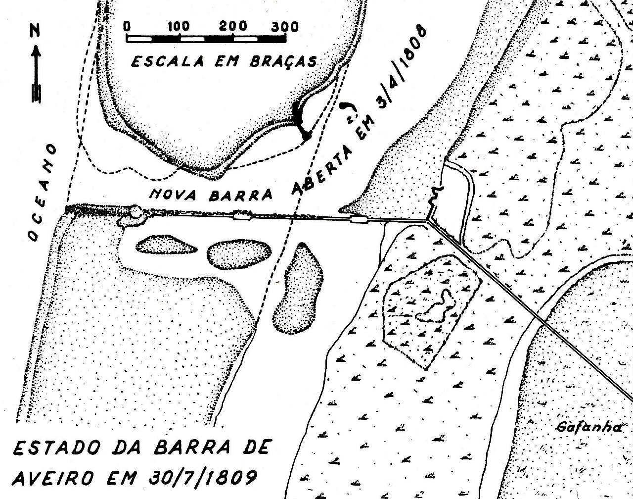 Em 1756, a barra de Aveiro atingiu a costa de Mira.