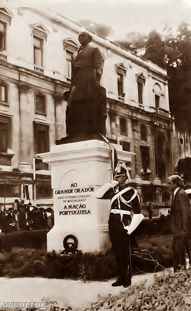 inauguração da estátua de José Estêvão, a qual enfrentou, durante