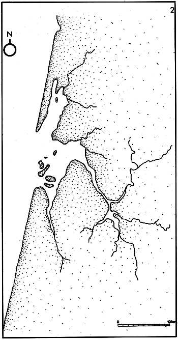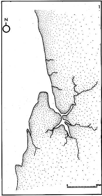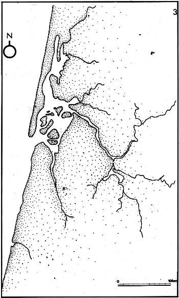 «O pequeno delta que o rio hoje forma, protegido pelo cordão de areias