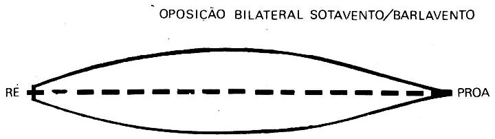 existência de um eixo transversal a dividir a embarcação em dois pólos.