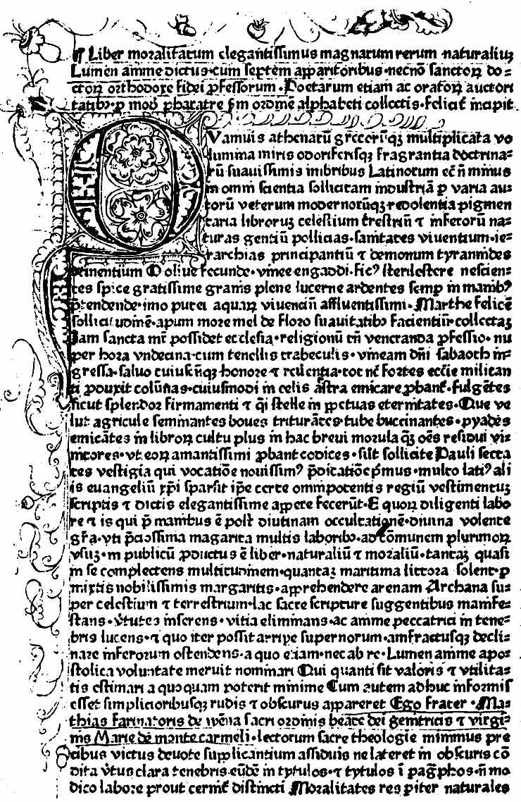 apresenta-se: «Ego, frater Mathias Farinatoris de Wêna». O livro foi
