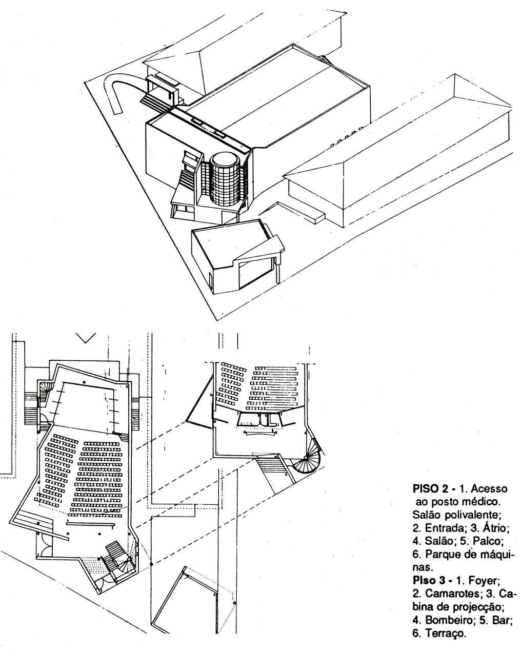paralelipipédico inicialmente previsto para o salão polivalente, e na