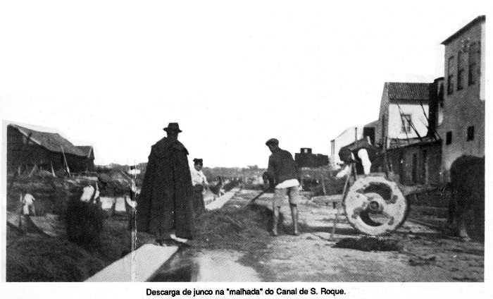 legenda "Descarga de junco no canal de S. Roque", uma das muitas