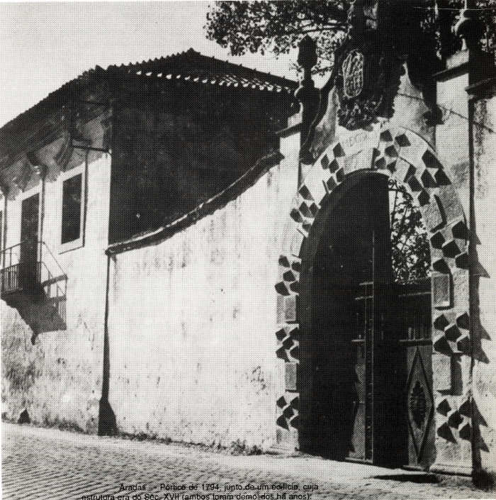 junto de um edifício, cuja estrutura era do séc. XVII. Por cimo do arco,