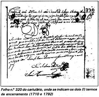 Folha 320 do Cartulário... –