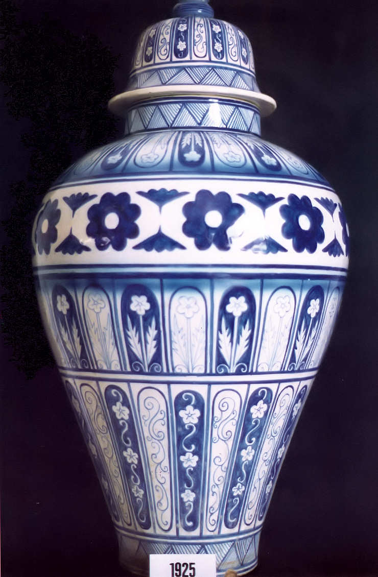 Pote alto de boca estreita decorado - 1925 da Fábrica Aleluia –