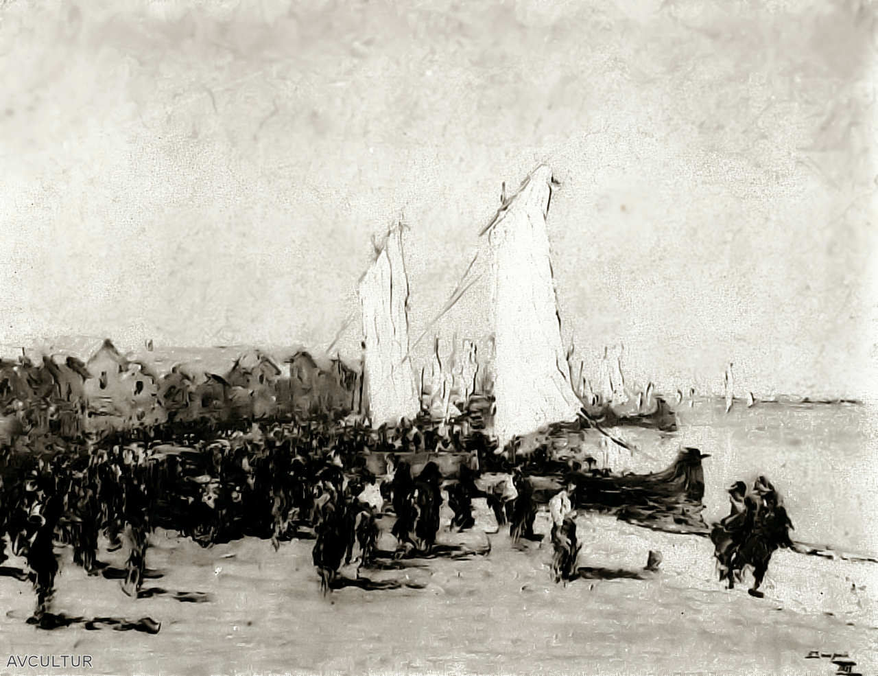 Costa Nova em dia de festa (1933) de Fausto Sampaio, existente no Museu de Aveiro –