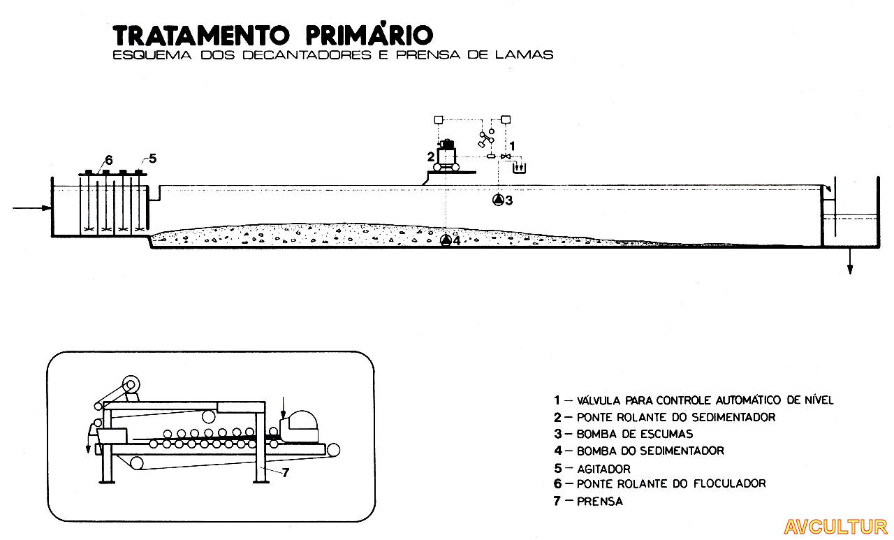 A retirada dos sólidos decantados é feita por meio de uma bomba