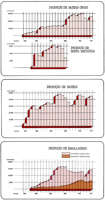 gráficos junto, no período inicial até 1959, a produção de pastas cruas