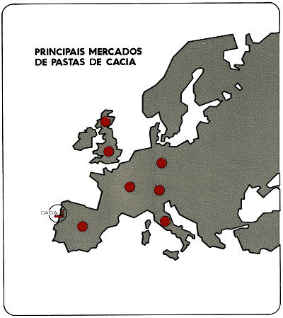 Em 1974, 30 % da produção de papel de CACIA foi exportada; cerca de 40 %