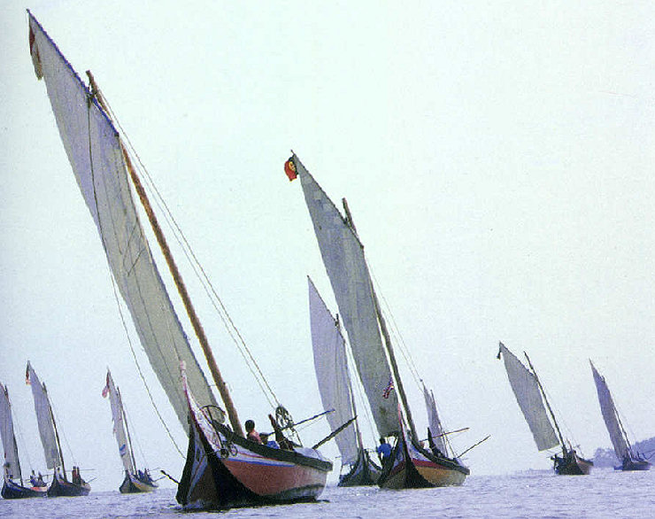 Diga-se, de passagem, que a predita primeira Regata não teve início na Torreira, mas em S. Jacinto, na pequena praia, junto do Cais da Pedra, tendo sido aberta a mercantéis, para que houvesse mais velas, logo mais beleza e consequente espectacularidade, se bem que, e como é óbvio, as respectivas classificações e prémios fossem independentes para as duas classes de barcos. Dado o êxito alcançado, sugeri que, nos anos seguintes, a largada se efectuasse, mais a norte, na Torreira – em pleno coração da zona do moliço, onde ainda havia, à época, mais de uma centena e meia de barcos que se dedicavam à apanha desse fertilizante orgânico, que transformou grandes extensões de improdutivos terrenos arenosos em ubérrimos campos agrícolas – pretendendo, com esta mudança, proporcionar, aos fotógrafos e cineastas, amadores e profissionais, mais 8 quilómetros de estrada ou correspondentes milhas marítimas, donde tivessem a possibilidade de realizar fotos e filmes que poderiam vir a constituir óptimos documentos promocionais para a nossa Ria, hipótese esta que veio a resultar em pleno.