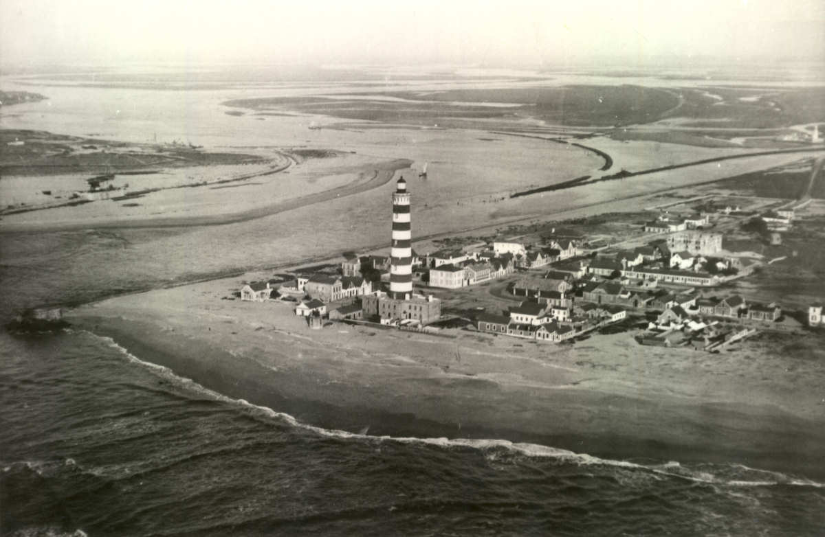 2 - Vista aérea da Barra em 1934. Notar que o molhe da Meia Laranja ainda não está construído  e de  S. Jacinto pouco ou nada existe.