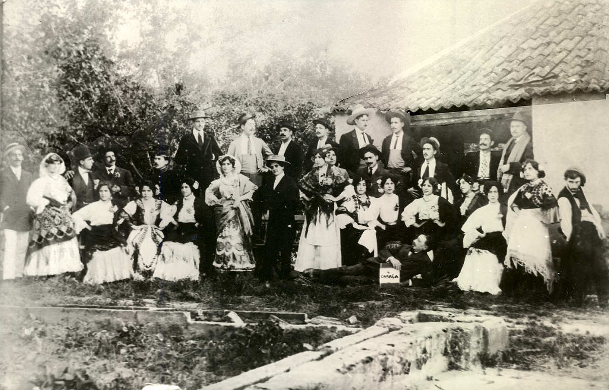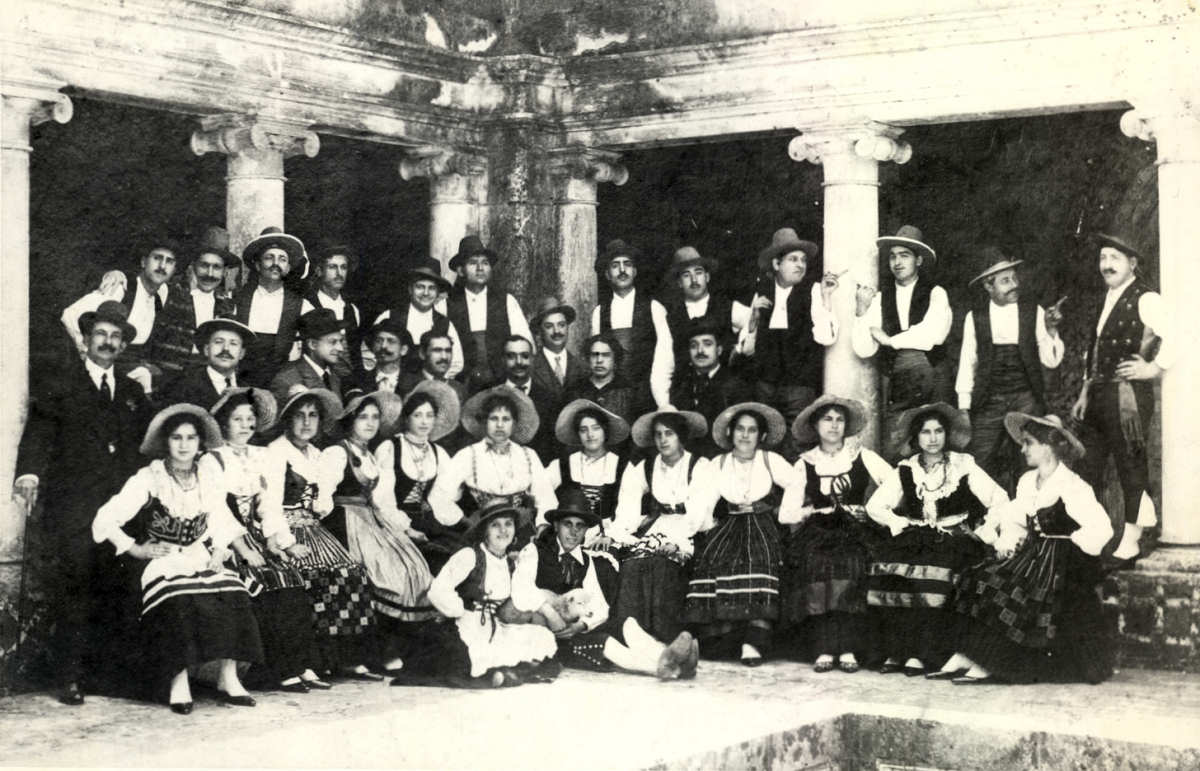 grupo cénico "TRICANAS E GALITOS", em 3 de Agosto de 1907, a