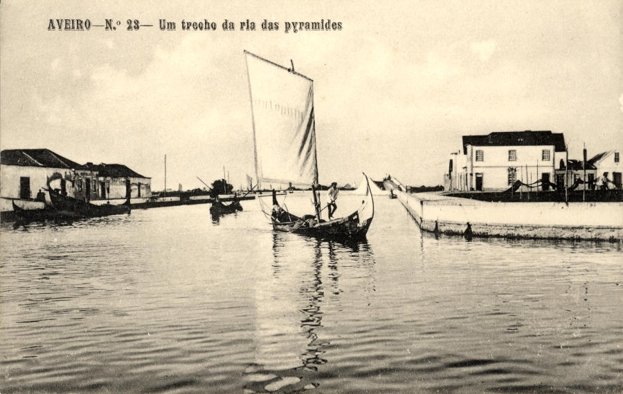N.º 23 - Aveiro Um trecho da ria das pyramides - Editores MOREIRA & TORRES, Aveiro - SD - Dim 13,8x8,8 cm. - Col.  FMSarmento.