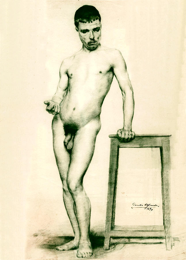 Carlos Mendes - Desenho a carvão; Aula do Nu. Academia Portuense