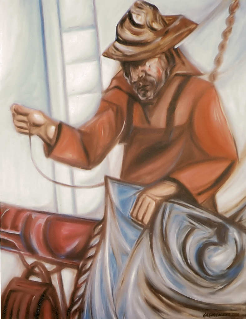 13 - Cosendo o Pano - Óleo sobre tela (90x70 cm)