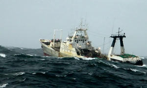 mostra o navio Calvão em plena laboração no Atlântico. |