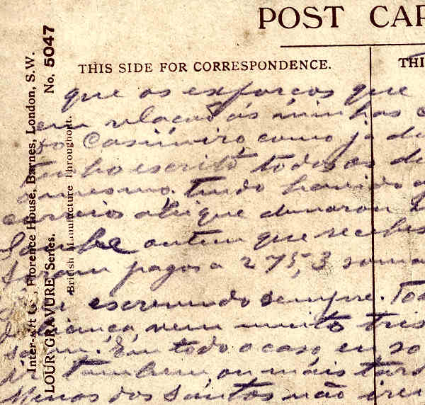 60. Mensagem de Amor. Postal de cerca de 1910 (verso)