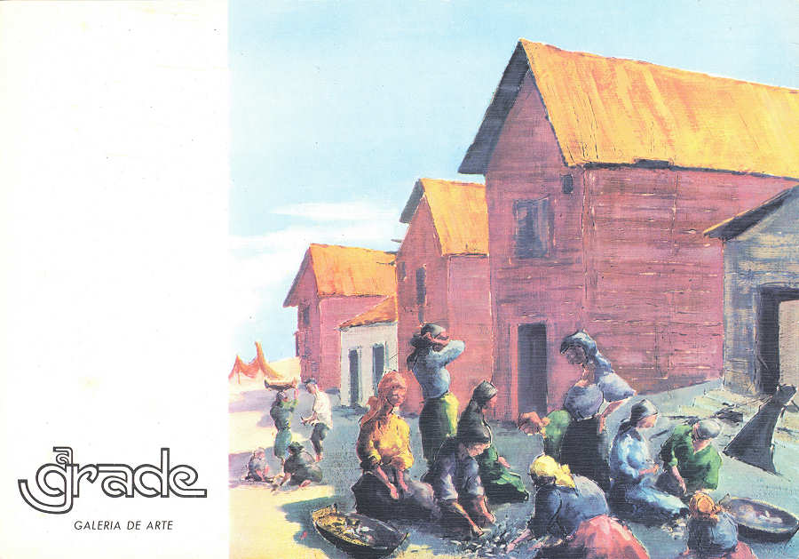S/N - Bairro piscatório. Óleo sobre madeira de 1981. Cândido Teles - Edição da Galeria "A GRADE", Aveiro - S/D - Dimensões: 15x10,5 cm. - Col. Énio Semedo