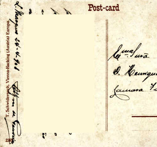 Desenho de E. Dorno, Munique. Postal circulado em 1907. |