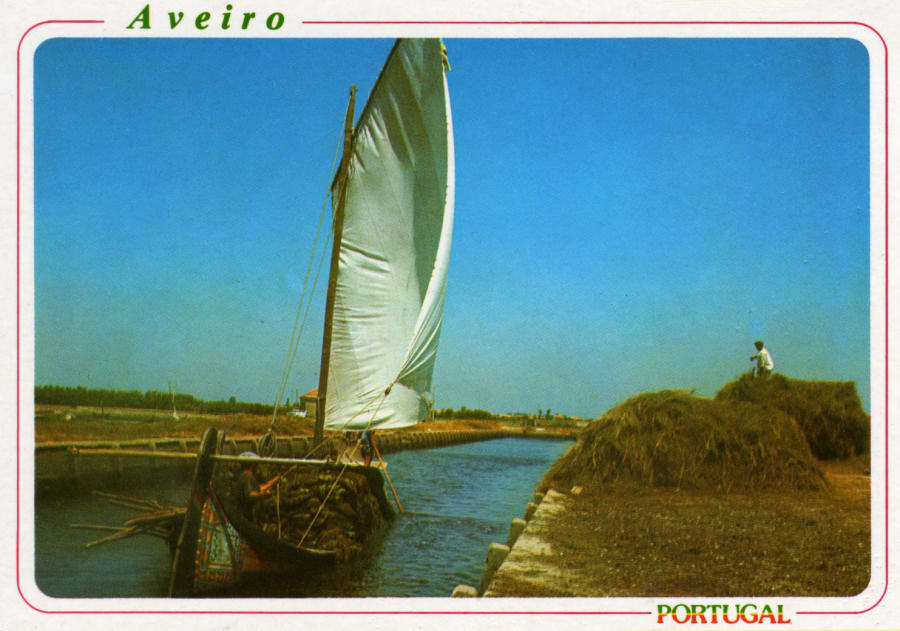 Antigo moliceiro transformado numa barcaça sem mastro movida