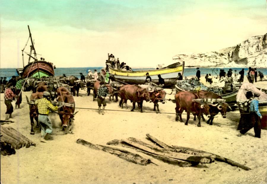 86. Barcos de pesca artesanal na praia da Nazaré.