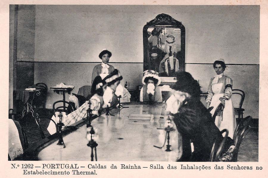 N.º 1262 - Portugal Caldas da Rainha Sala de Inhalações das Senhoras no Estabelecimento Thermal - Editor Alberto Malva (Editado em 1910) - Dimensões: 9x14 cm. - Col. Miguel Chaby