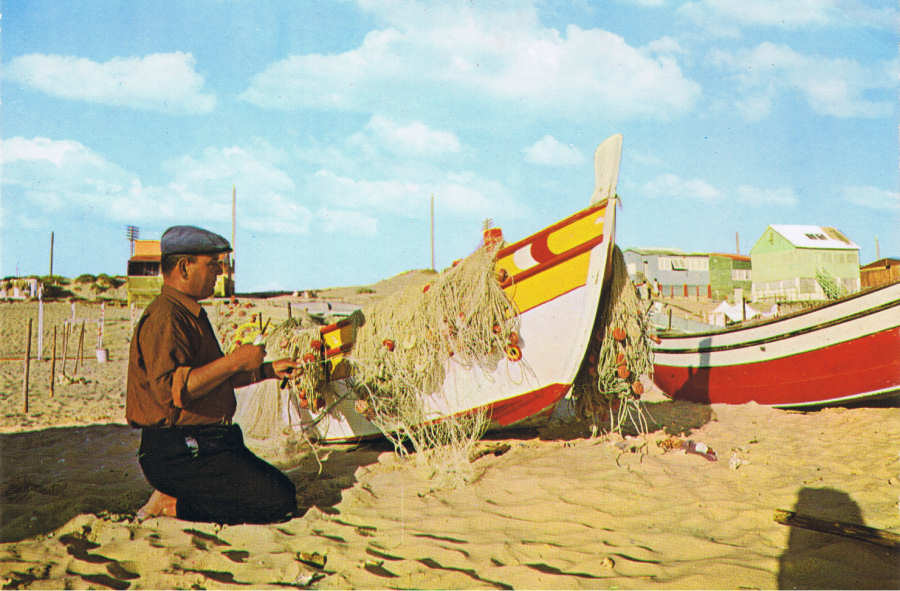 1. Nº 615. COSTA DA CAPARICA.PORTUGAL Pescador preparando as redes.