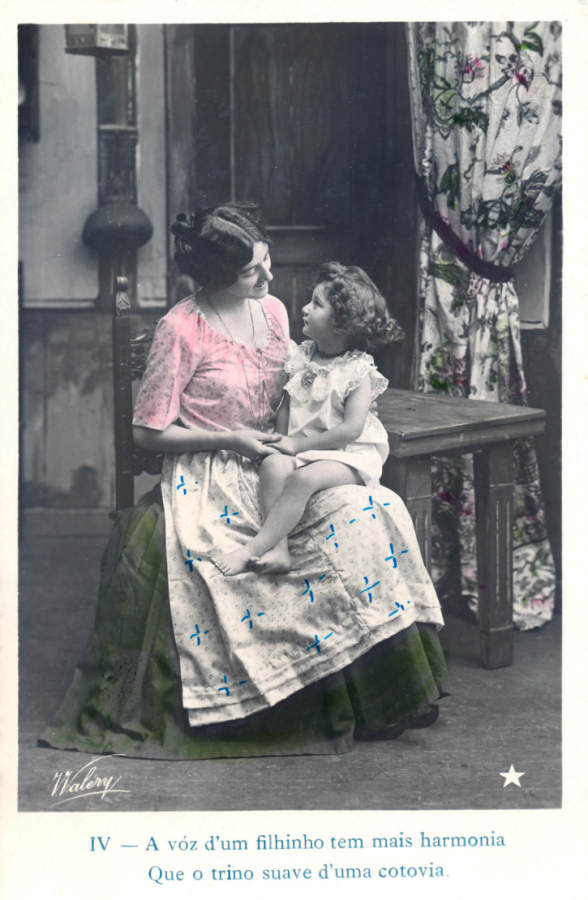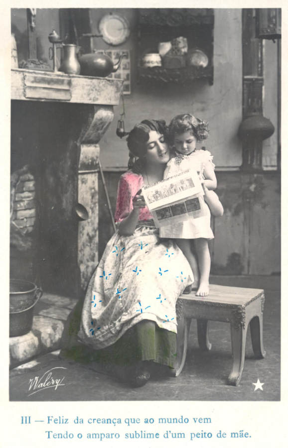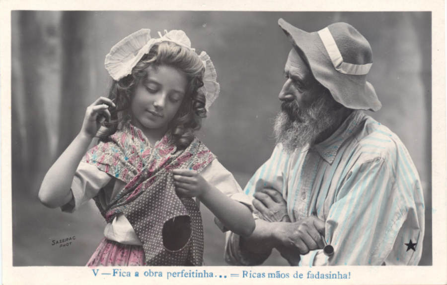 98. Menina com rosa ao peito com lantejoulas coladas (cerca de 1910)