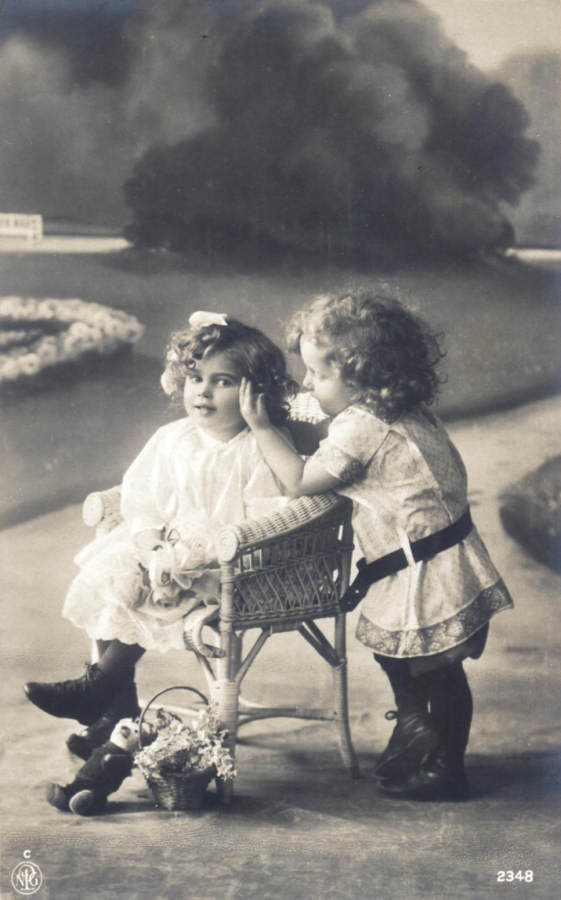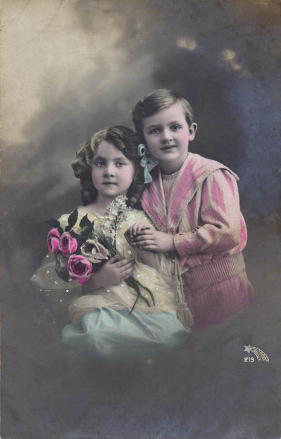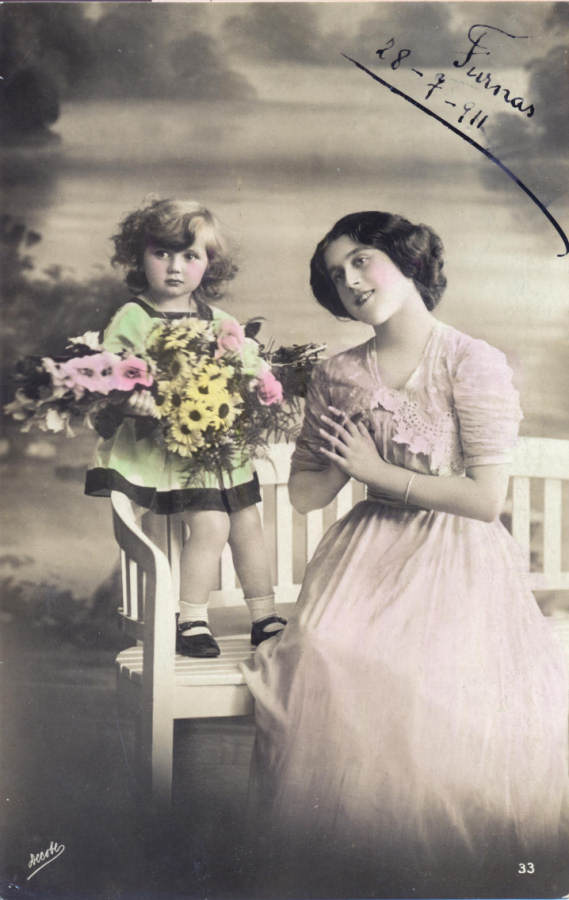 97. Menina com rosa ao peito com lantejoulas coladas (cerca de 1910)