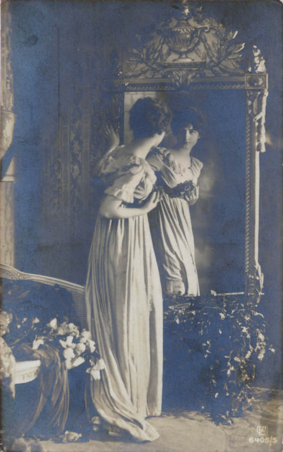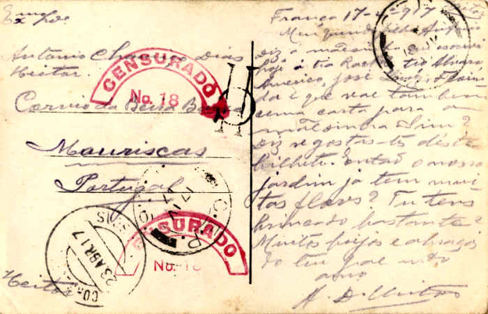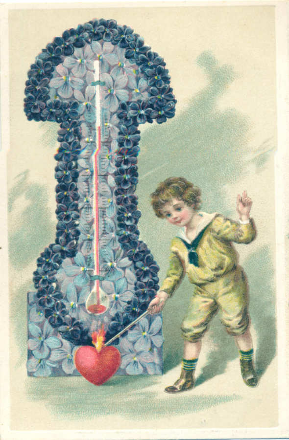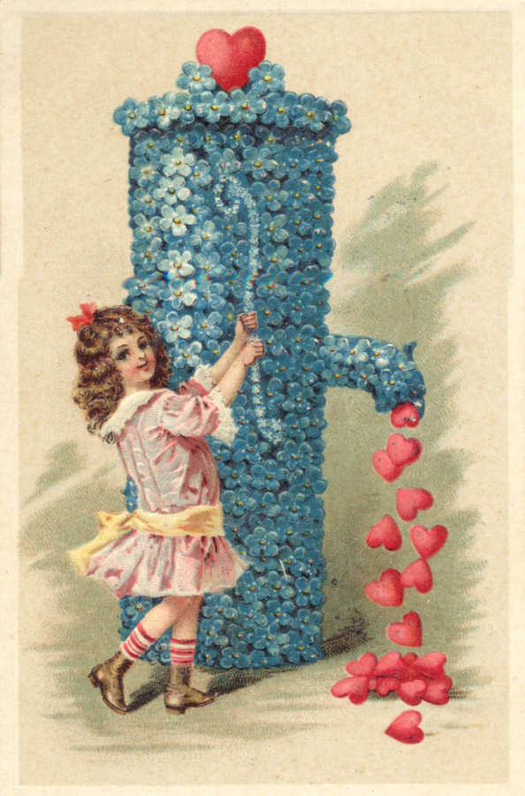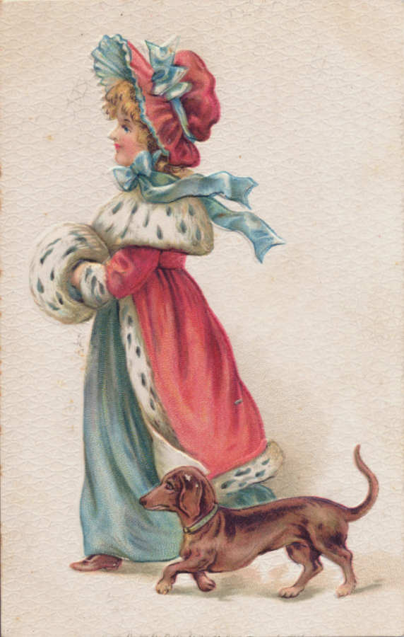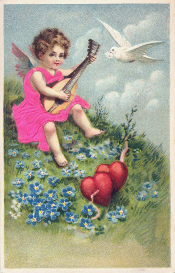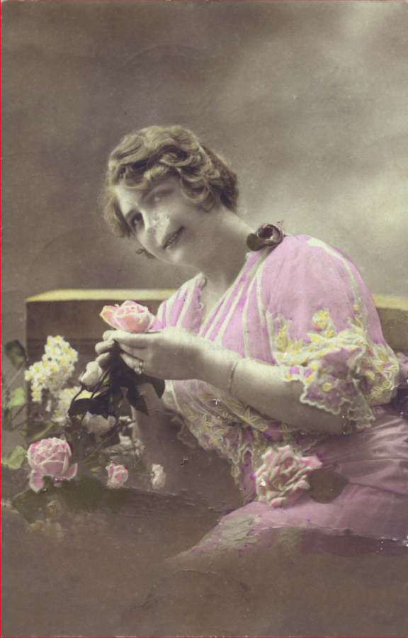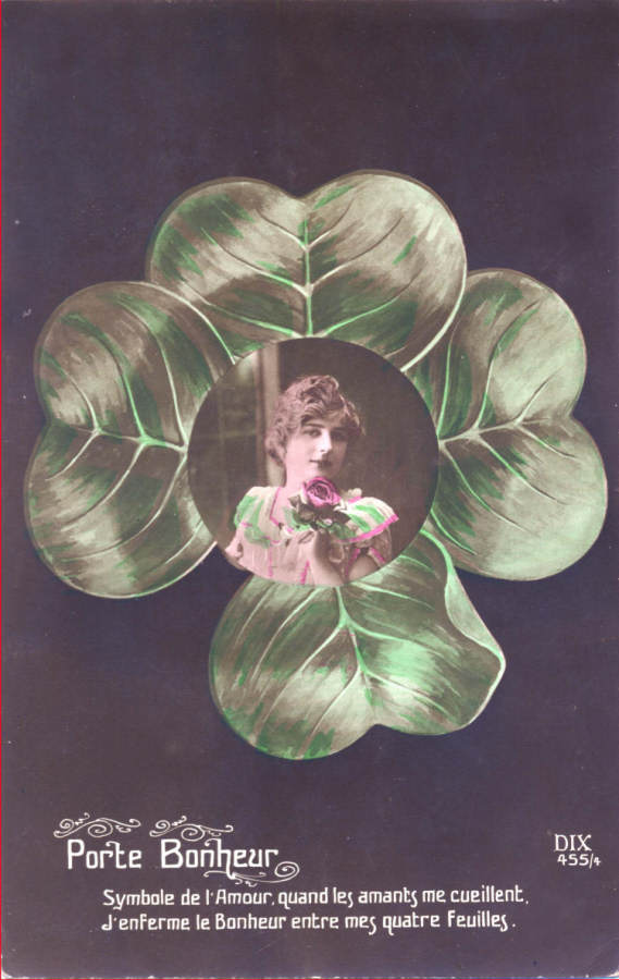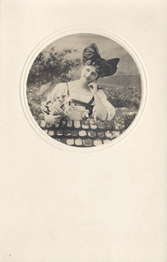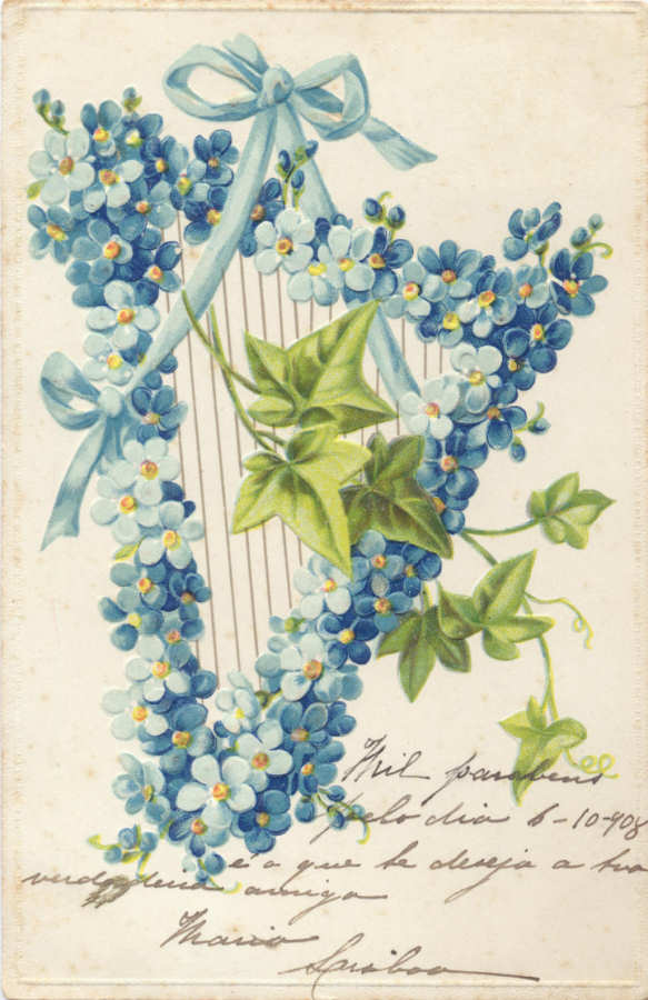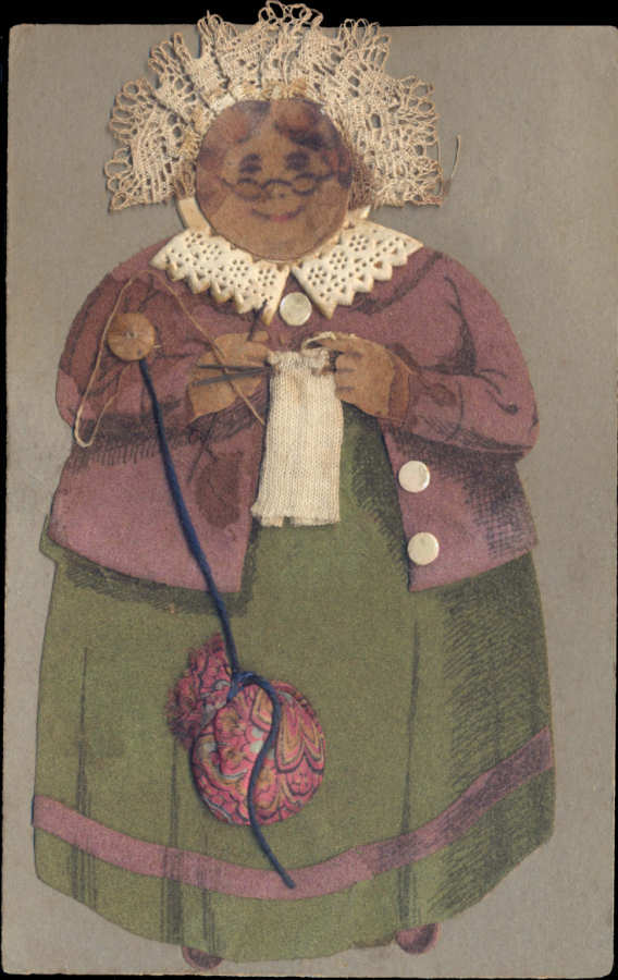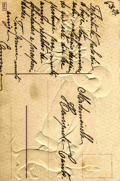 Postal alemão circulado em 1914 com colagens: papel de veludo,