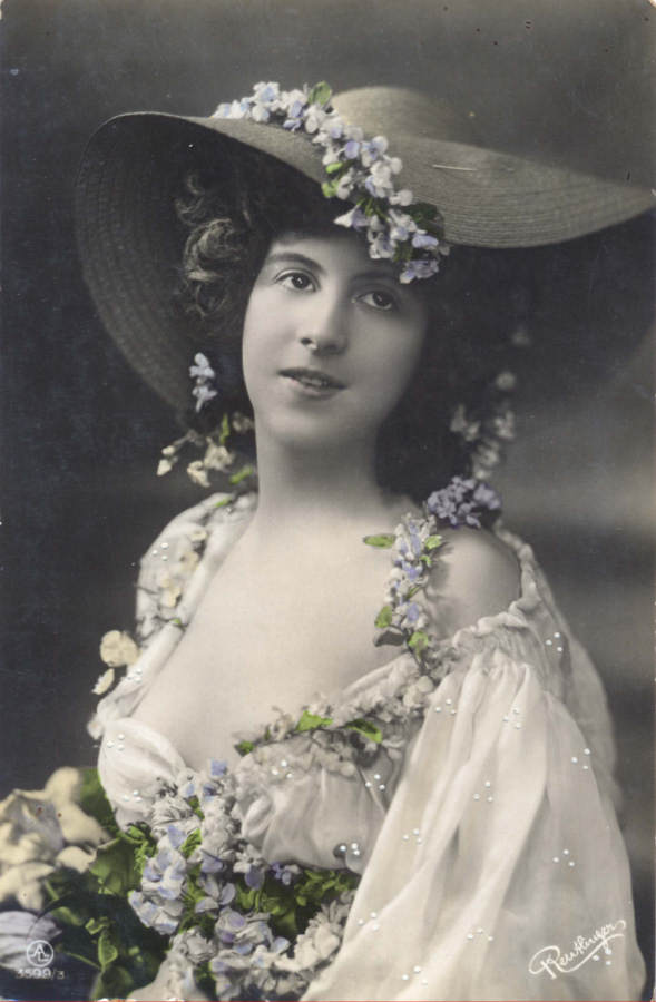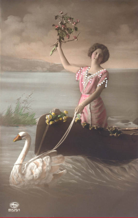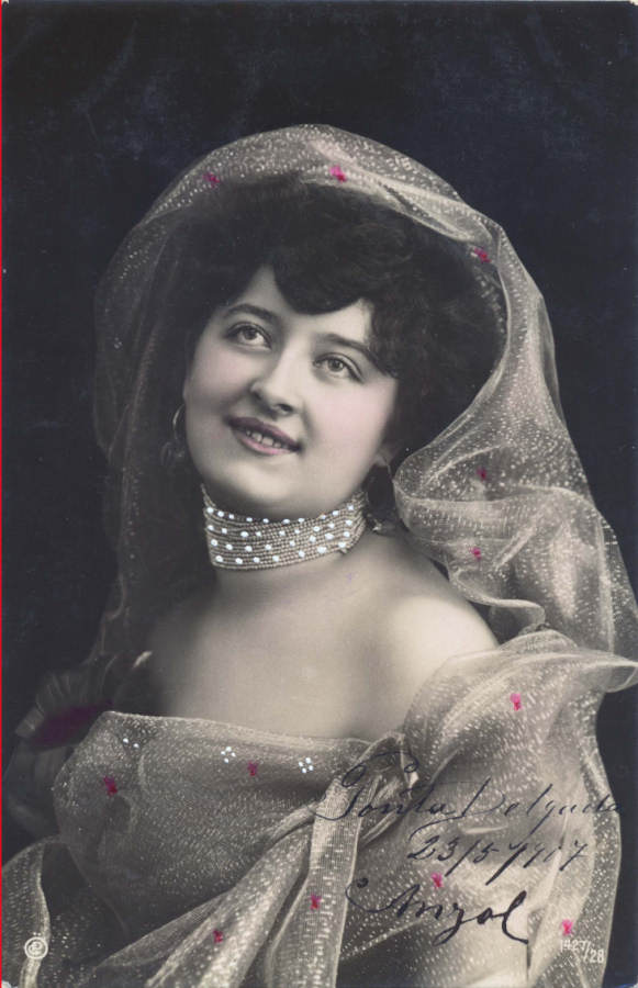 Nº 28 - Postal com lantejoulas coladas - Edição Oestrre Photograph Gesellshaft, Vienne - Circulado em 1907 - Dim. 13,7x8,6 cm - Col. Amílcar Monge da Silva