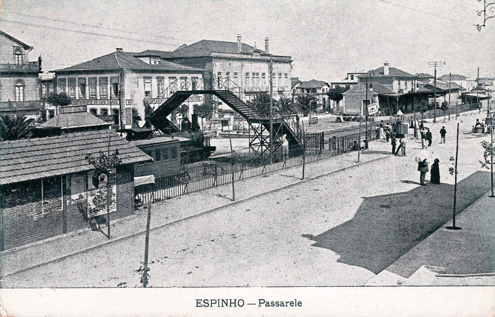 81. Vista parcial de Espinho a partir das janelas do cinema S. Pedro, vendo-se a estação tal como era na década de 1950.