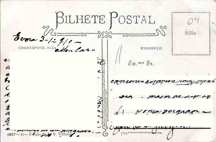27 - Claustro do extinto Convento de S. Bento de Castris. (Extinção em 18ABR1890 por morte da última freira). (c 1909) (Verso)
