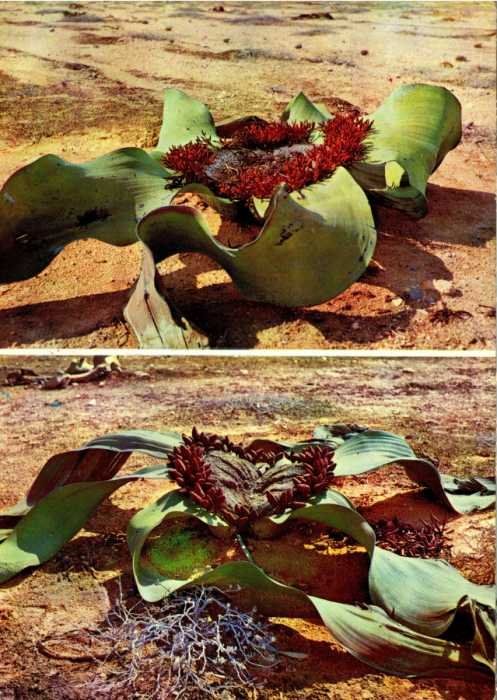 N.º 9 - WELWITSHIA MIRABILIS (Macho e fêmea) Planta única no mundo. Existente apenas no Deserto de Moçâmedes - Edição da FOTO ROVIC, C. P. 300, tel. 118 Moçâmedes - S/D - Dimensões: 10,7x15 cm. - Col. Manuel Bóia (1973).